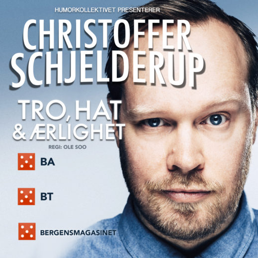 Etter suksess på scenen med “BergensBølgen” (OleBullScene), “Latter Live” (NRK) og utallige show rundt om i landet blir “Tro, Hat og Ærlighet” Schjelderups første solo standupforestilling. Og det