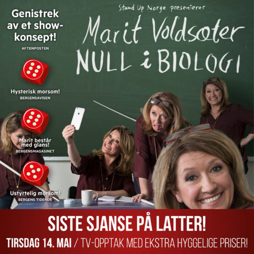 Marit strøk i biologi på skolen og nå har hun giftet seg med en professor i faget. Slikt blir det humor av og mye av dette får du oppleve i hennes neste forestilling. Hvorfor blir vi høyere? Er vi egentlig alle kinesere? Finn pulten din før det ringer inn til en hysterisk morsom skoledag, med Marit som assisterende lektor. I alle fag!